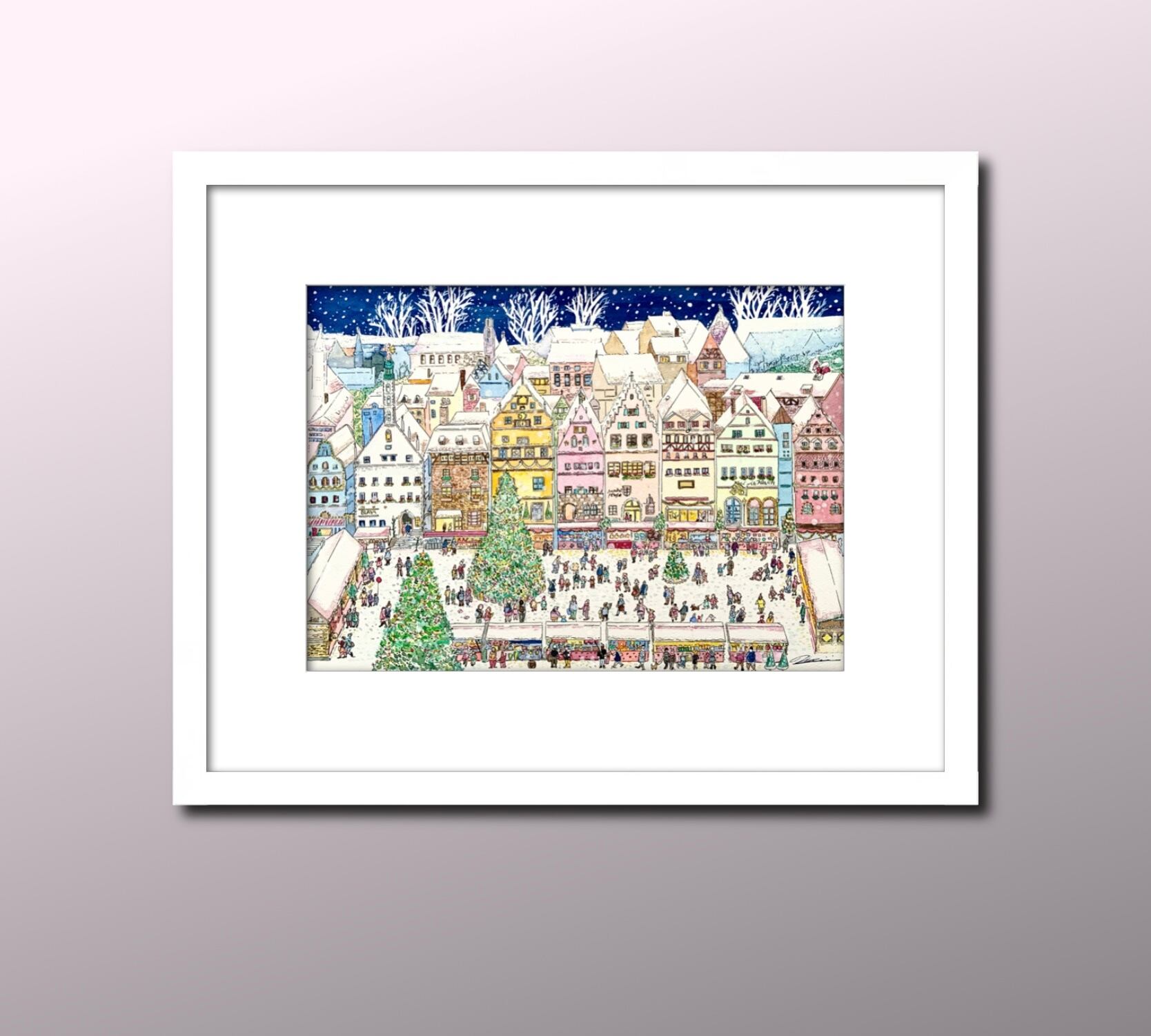 ジグレー版画「天使の旅ークリスマスマーケット〜ローテンブルク」