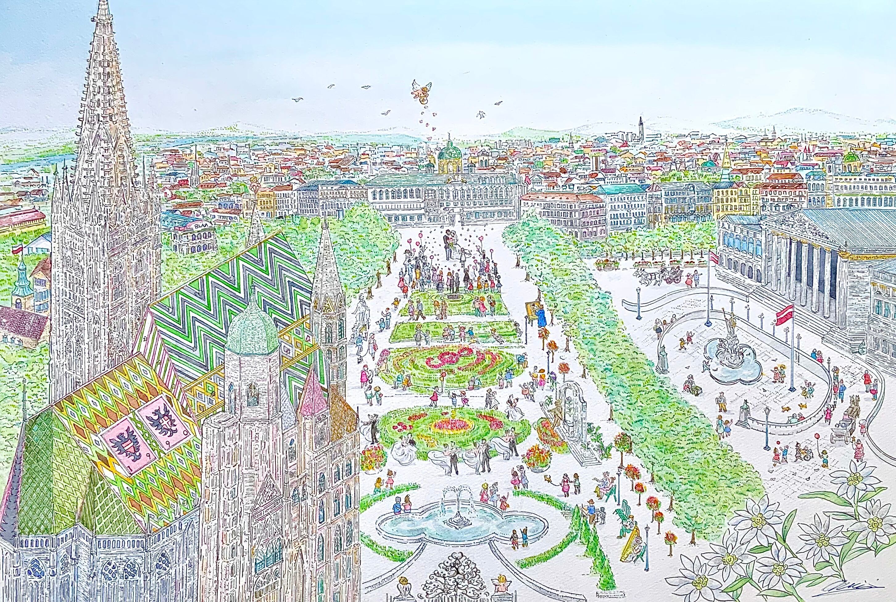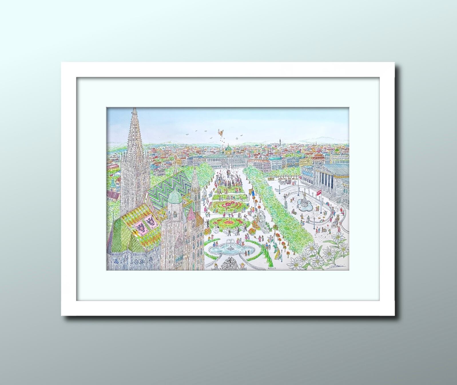 ジグレー版画の魅力を活かし、繊細な肌理と優雅な色合いで、ウィーンのエレガンスを華やかに表現しています。