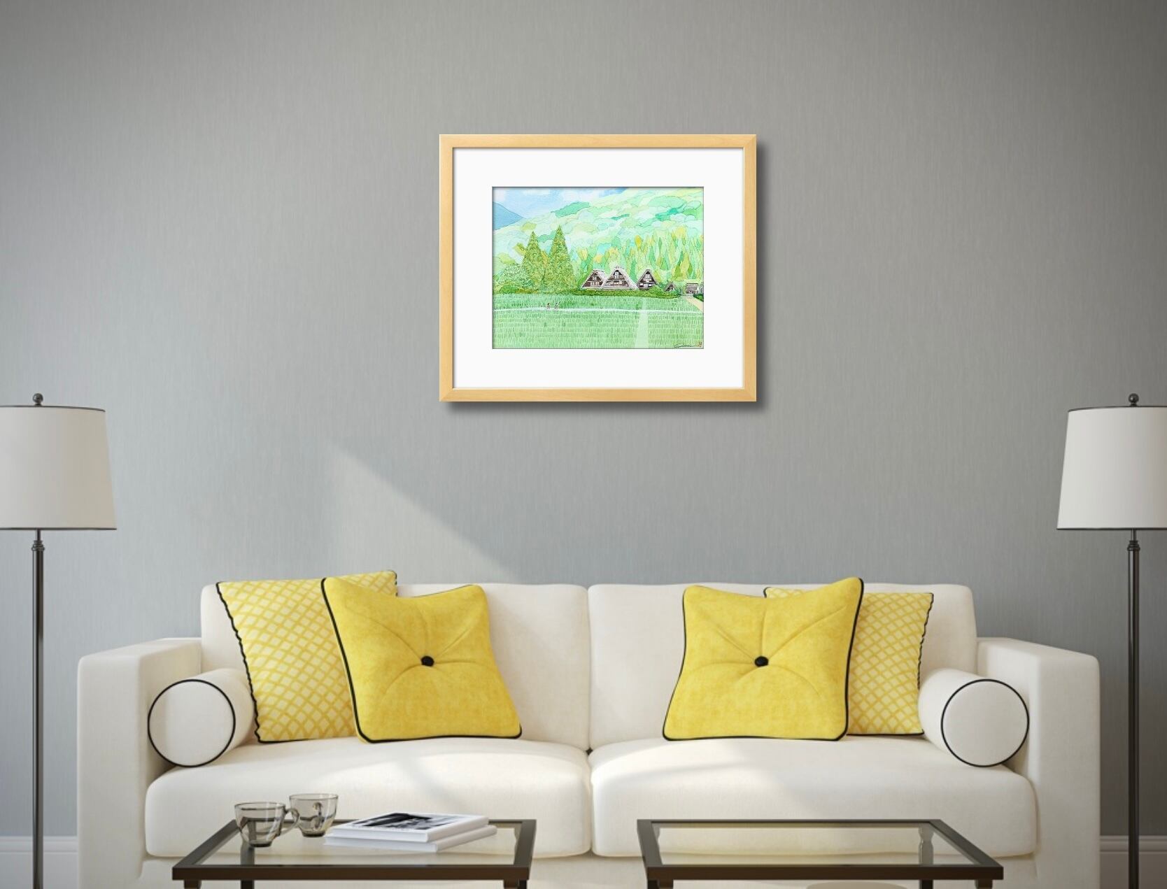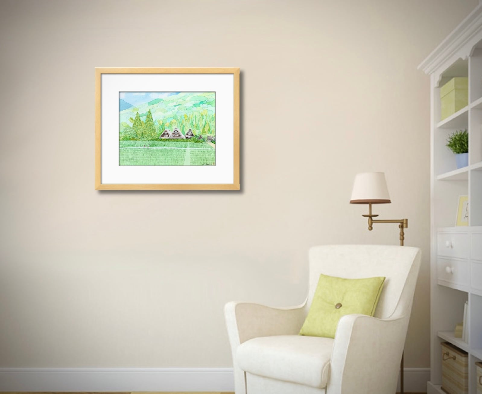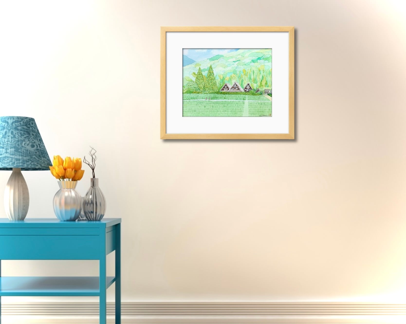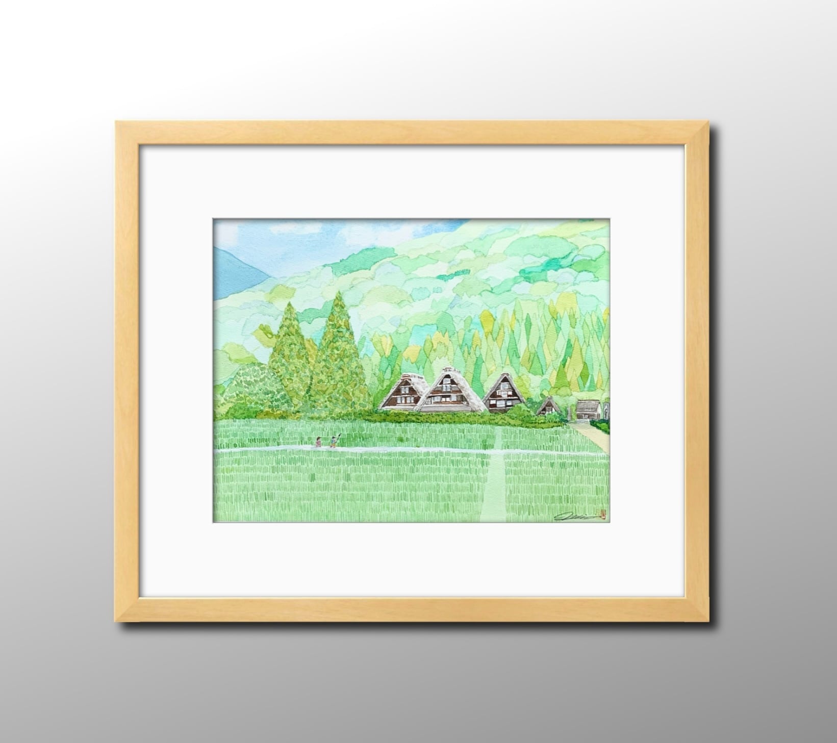 ジグレー版画としてその魅力を最大限に引き出し、温かみのある色合いと繊細なディテールで白川郷の独特の雰囲気を表現しています。