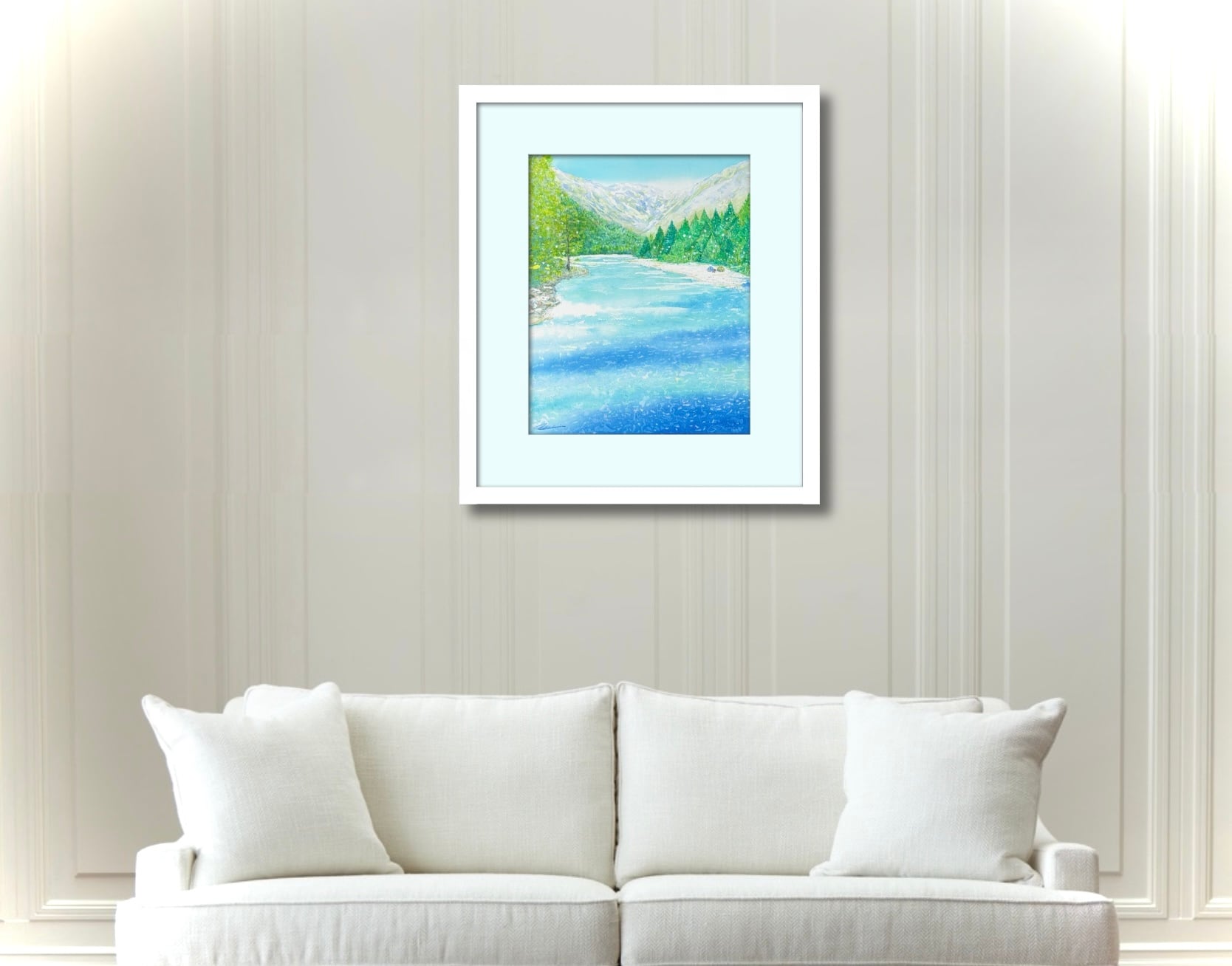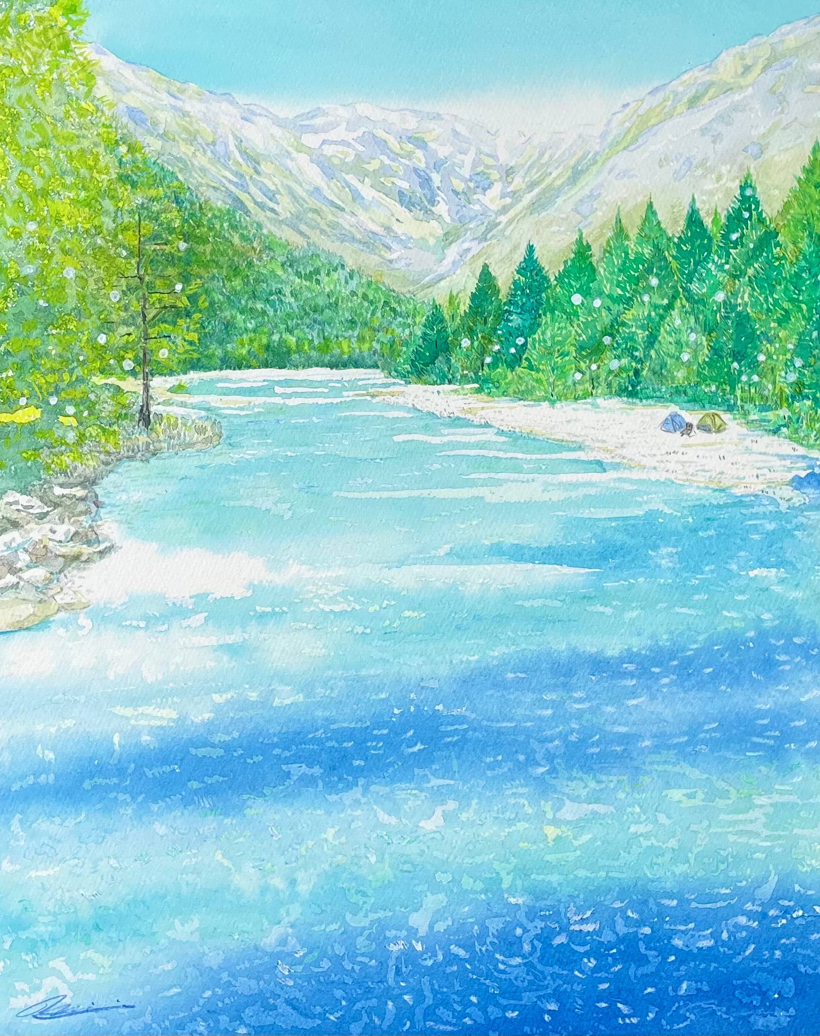 ジクレー版画の特性を最大限に活かし、鮮やかな色合いと緻密なディテールで、上高地の夏の魅力を鮮明に再現しています。